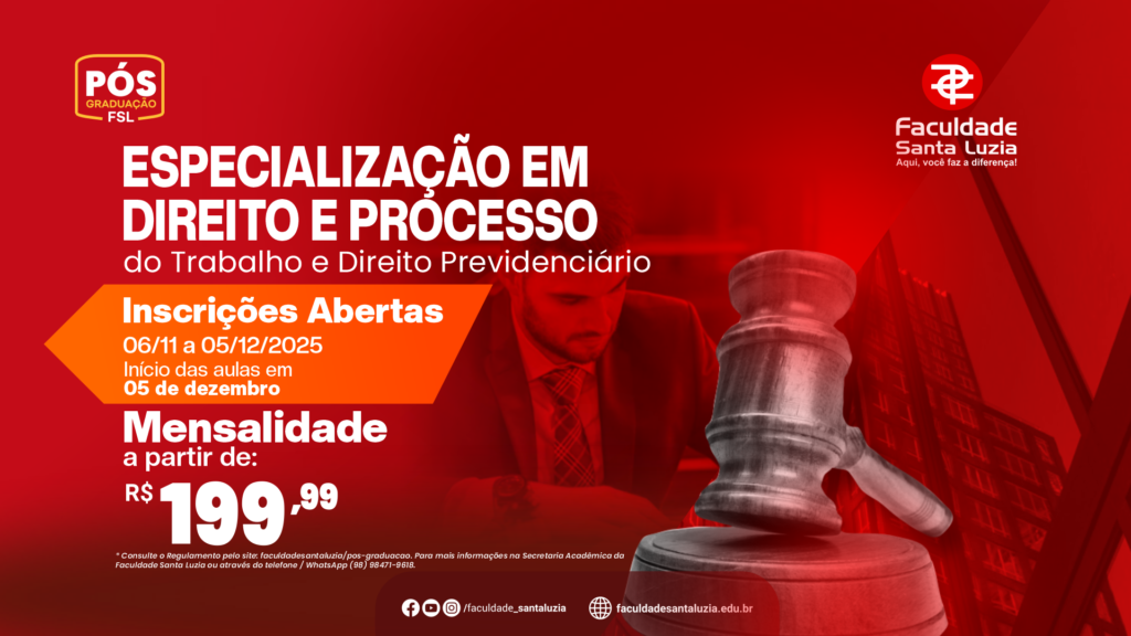 Calendário Acadêmico 2026Especialização em Direito e Processo do Trabalho e Direito PrevidenciárioVestibular Agendado 2026 Notícias Ver mais… Calendário Acadêmico 2026 III Jornada Jurídica de Direito Processo Seletivo Docente FSL Vestibular Agendado 2026