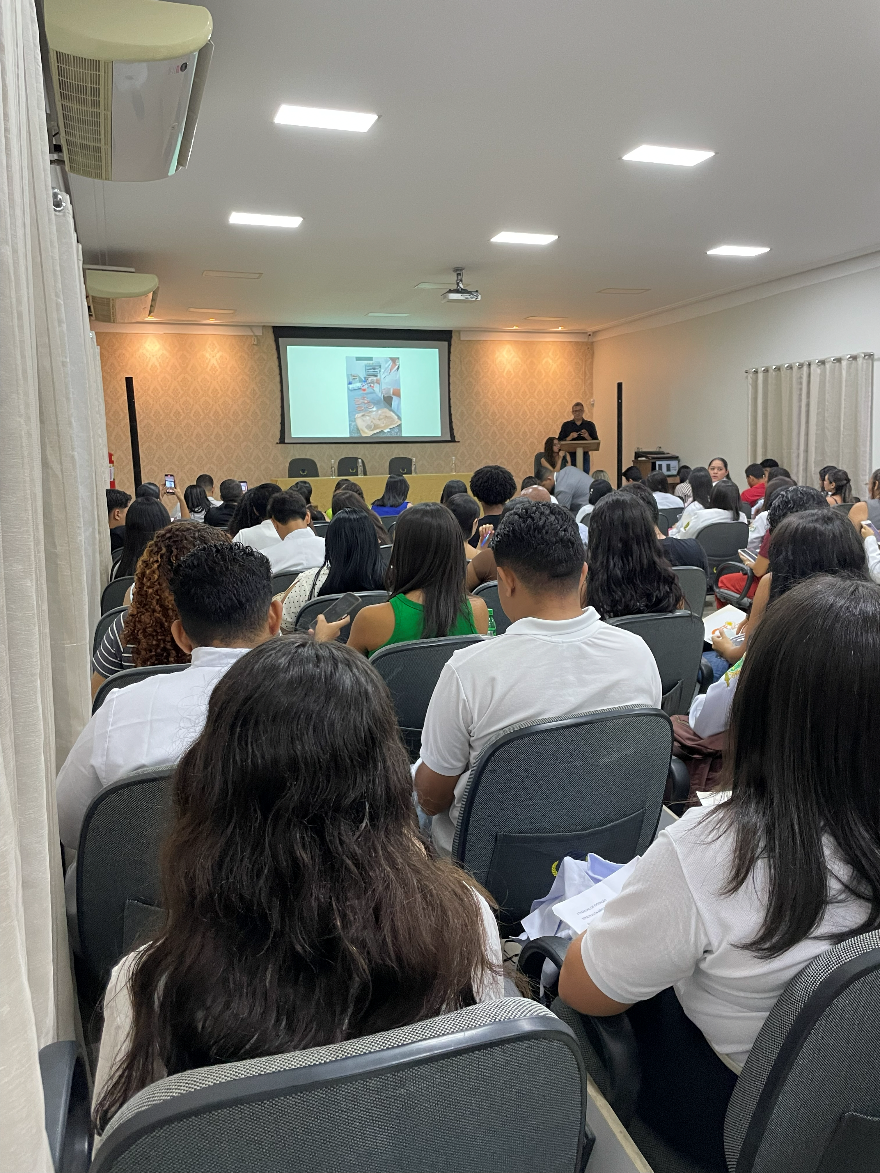O primeiro dia da jornada, 20 de outubro, aconteceu na Associação Comercial de Santa Inês, onde foi realizada uma palestra enriquecedora voltada ao aperfeiçoamento acadêmico e à reflexão sobre os desafios e avanços da profissão farmacêutica. O encontro possibilitou um espaço de diálogo entre estudantes e profissionais da área, destacando a importância da atuação do farmacêutico na promoção da saúde e no cuidado com o paciente.