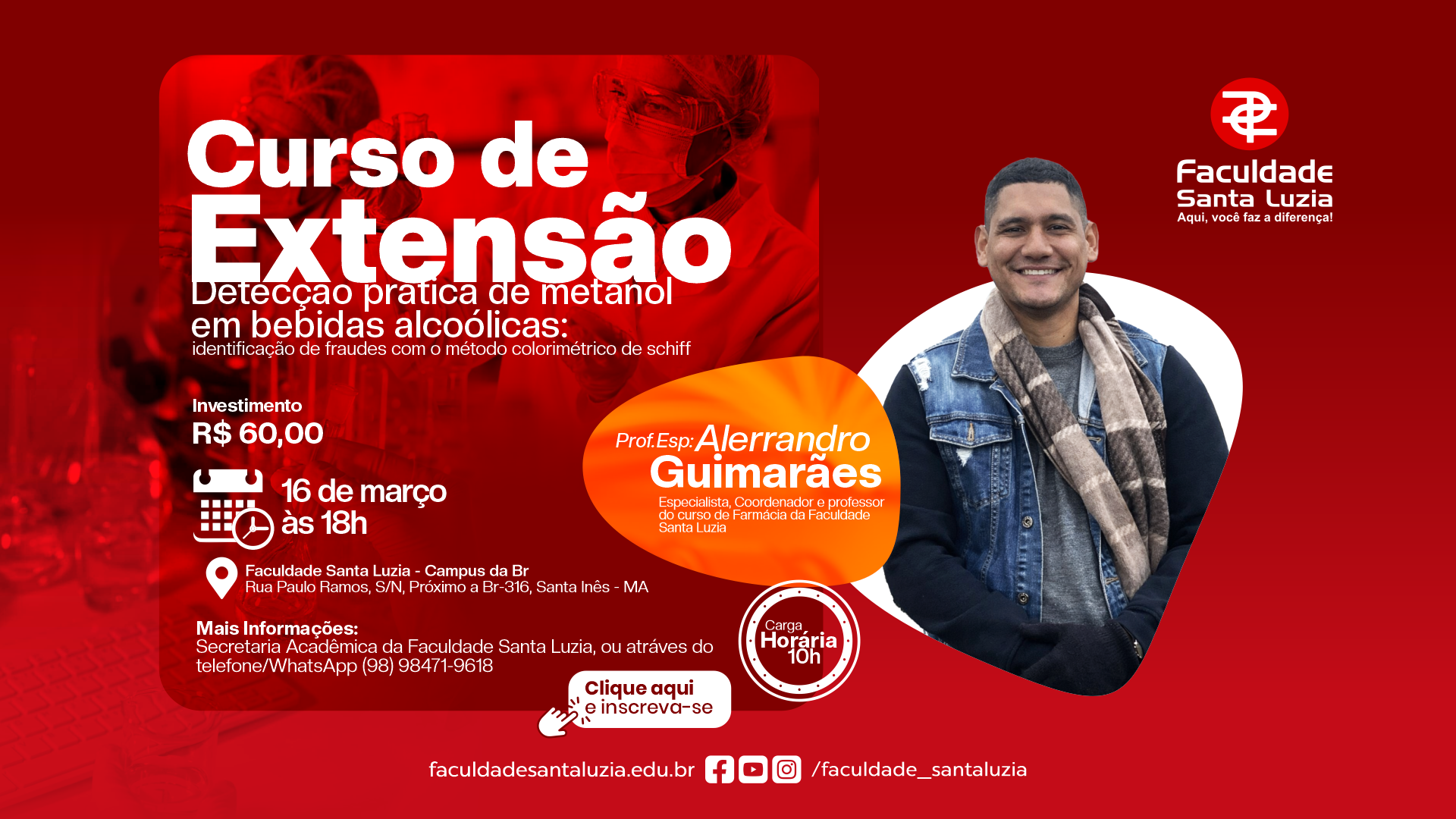 A Faculdade Santa Luzia está com inscrições abertas para o Curso de Extensão: Detecção Prática de Metanol em Bebidas Alcoólicas – Identificação de Fraudes com…